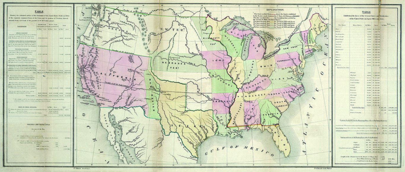 A nyugat felé terjeszkedő Egyesült Államok területe rövid időn belül sokszorosára nőtt: az őslakos törzseket kíméletlenül uralmuk alá hajtották, megvásárolták Franciaországtól Louisianát, a Mexikói-öböltől Kanadáig terjedő, kétmillió négyzetkilométernyi földsávot, megszerezték Spanyolországtól Floridát és az ekkor mexikói fennhatóság alatt álló Texasban is egyre többen telepedtek le.