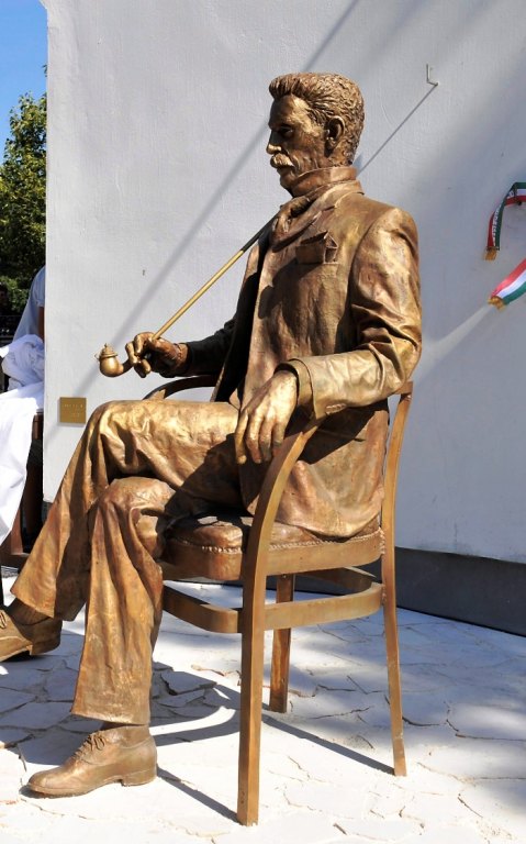 Gárdonyi Géza születésének 150. évfordulója alkalmából felavatták az író egész alakos szobrát a szülőházánál Gárdony-Agárdpusztán.