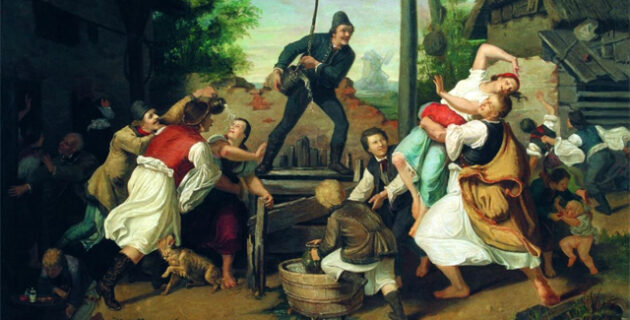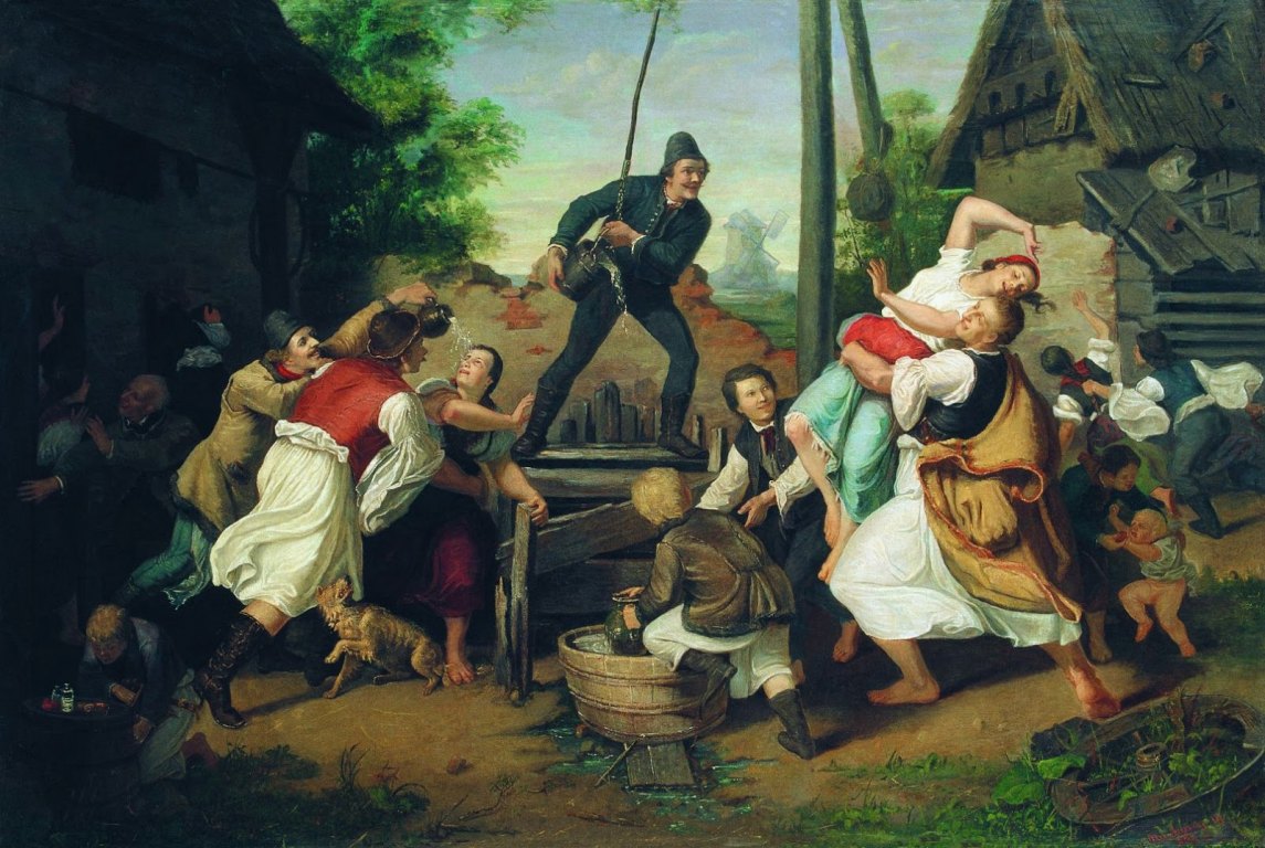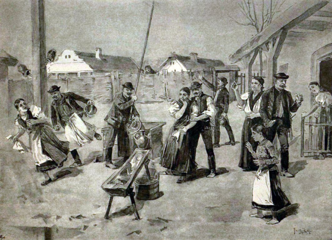 – „Ne féltsd a kutat, nem apad ki!” – kurjongat Czifra Peti a többieknek, s hogy jó példával járjon elől: úgy önti nyakon a termetes Erzsókot, hogy szép nagy haja kibomlik bele, s nedvesen csapzik karcsú derekára. A többiek is dolgoznak erősen minden utcasarokról, minden udvarból éles sikongatás, lárma, kiabálás hallik azt tudnák, tatárjárás van. Igyekeznének is a lányok menekülni, csakhogy oh csudák csudája, mindig arra találnak szaladni, a hol egy-egy más csinos legény leskelődik vizes edényével.” (Forrás: Vasárnapi Ujság, 1893. április 2.)