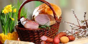 A húsvét elnevezés a böjti időszak végére utal, mert ekkor lehet újra húst enni. A húsvétvasárnapi szertartás része a húsvéti ételek (bárányhús vagy sonka, kalács, tojás, bor) megáldása. Sokfelé a szentelés után siettek haza, mert a néphit szerint a lemaradó még abban az évben meghal, míg az elsőnek hazaérő első lesz az aratásban.