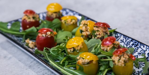 KÁPIÁS PAPRIKÁS KUSZKUS SALÁTA KOKTÉLPARADICSOMBA TÖLTVE – RECEPT