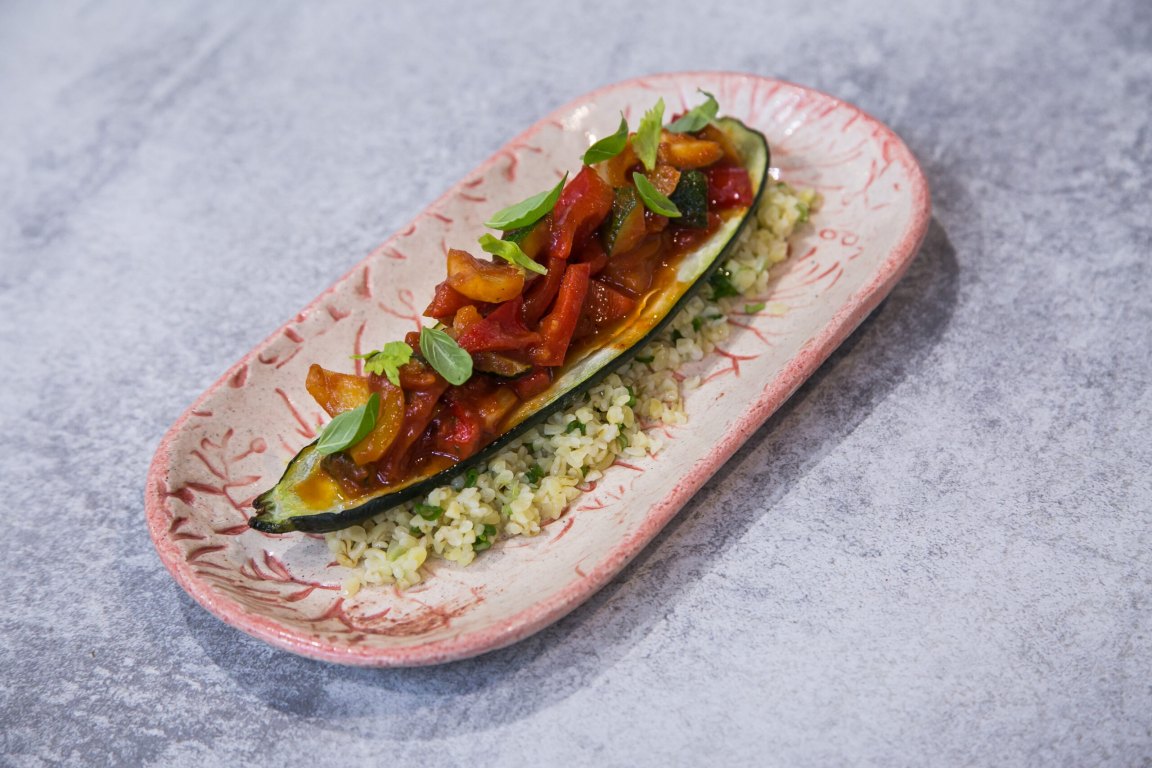 Bernáth József receptjei alapján ezekből előételnek egy kápia paprikás kuszkusz salátát ajánlunk koktélparadicsomba töltve, főételnek pedig lecsós cukkinicsónak.