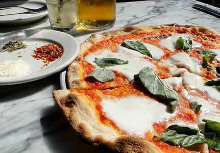 225 fokra előmelegítjük a sütőt. A paradicsomokat felszeleteljük és a pizza alapon elosztjuk, a tészta szélén hagyjunk ki körben kb. 1 centit. Karikákra szeleteljük a mozzarellát és a paradicsomokra fektetjük. Sózzuk és borsozzuk. Kb. 15 perc alatt sül meg. Vegyük ki a sütőből és szórjuk meg a pecorinóval és a bazsalikomlevelekkel. A bazsalikomleveleket gondosan öntözzük meg olívaolajjal és süssük további 10 percet.