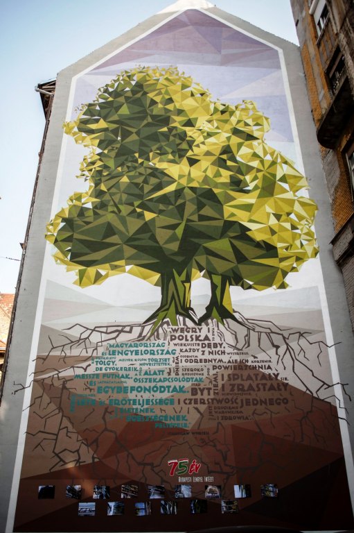 Fa a falon, avagy az óriás falfestmény, amelyet a Budapesti Lengyel Intézet fennállásának 75. évfordulója alkalmából ajándékozott a város lakóinak.