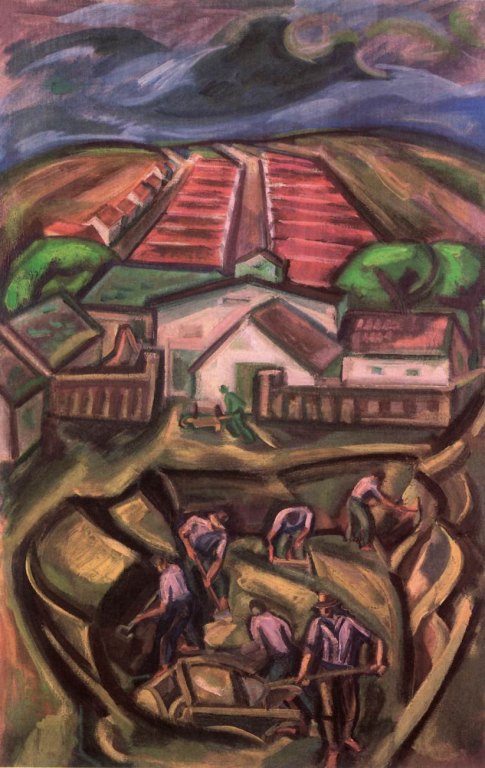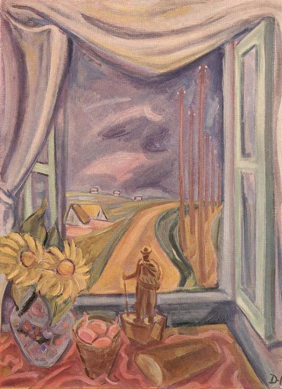 Konstruktív vásznai egyre drámaibbakká, expresszívebbekké váltak. Késői, emlékezetesebb képein erős indulat vezérli, élénk színei zaklatottságot sugallnak (Viharmadarak, Fedics bácsi, Erdélyi emlék, Vándor az ablakban, Péter-Pál után, Naplemente). Több vásznán a dolgozó ember a táj részeként jelenik meg. Uitz Béla forradalmi monumentalitása éppúgy hatott rá, mint Derkovits expresszivitása.