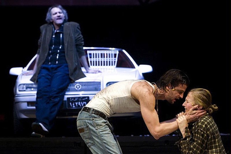 2002. március 15-én is Madách drámai költeményével nyílt meg az új Nemzeti Színház. A nyitó előadást – teljesen új felfogásban – Szikora János rendezte, Ádámot Szarvas József, Évát Pap Vera, Lucifert Alföldi Róbert alakította.