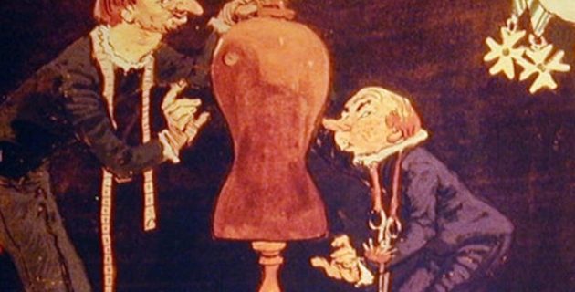 Végre a császár is rászánta magát, hogy megnézze, még szövés közben. Válogatott kíséretével – köztük volt a derék miniszter meg a főhopmester is – benyitott a furfangos takácsokhoz, akik serény kézzel szőtték a levegőt az üres szövőszéken.