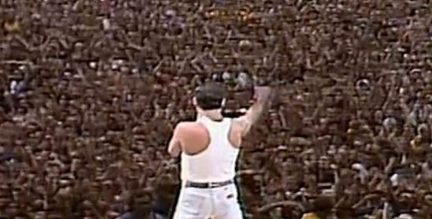 1985. július 13-án a Queen kivonult a Wembley Stadion 75 ezer fős közönsége elé. A farmert, atlétatrikót és bokszolócipőt viselő Freddie Mercury arcán halvány mosollyal lehuppant a zongoraszékre, és gyöngéden felcsendültek a >Bohemian Rhapsody< kezdő hangjai, s ezzel megkezdődött az a húsz perc ötvenhat másodperces előadás, melyet még ma is sokan minden idők legerőteljesebb rockkoncertjének tartanak, amelyet az egész világ láthatott.
