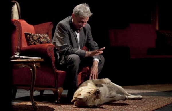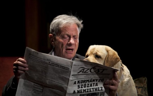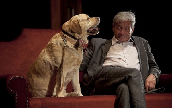 Mint a színész elmondta, az előadásban nem a saját kutyájával játszik, egy fegyelmezett, kedves, szolgálatkész, pontos vakvezető kutya a partnere. Azért mindig van valami esetlegesség a kutya fellépése miatt a színpadon – ez a kihívás, a veszély, de egyben ez az érdekes is benne – tette hozzá.