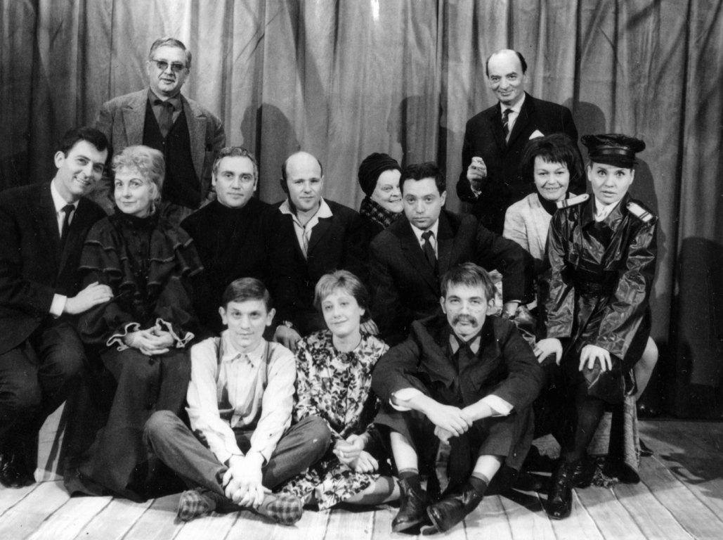 A fotón: Eörsi István: Sírkő és kakaó című zenés komédiájának alkalmával készült. Középen ülnek: Keres Emil igazgató, Komlós Juci sznművésznő, Kazimir Károly művészeti vezető, Eörsi István író, Dajka Margit szinművésznő, Léner Péter rendező, Gáti Vilma asszisztens, Horváth Teri színművésznő. Hátul Rajkai György diszlettervező és jobbra Lugosy Bálint építészmérnök, a színház főmérnöke. Elöl ül Harsányi Gábor, Hacser Józsa és Kozák András színművészek.