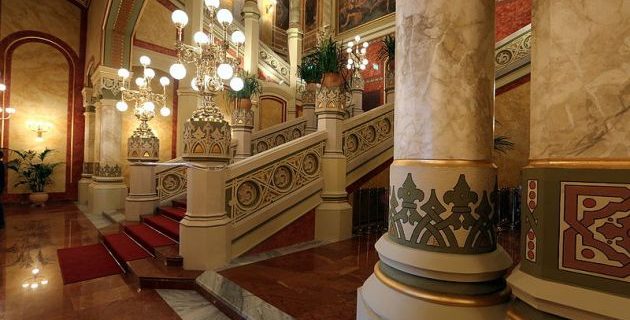 A pesti Duna-korzó egyik leglátványosabb épülete a Vigadó, mely a 19. század második felében Feszl Frigyes építész tervei alapján épült romantikus stílusban.