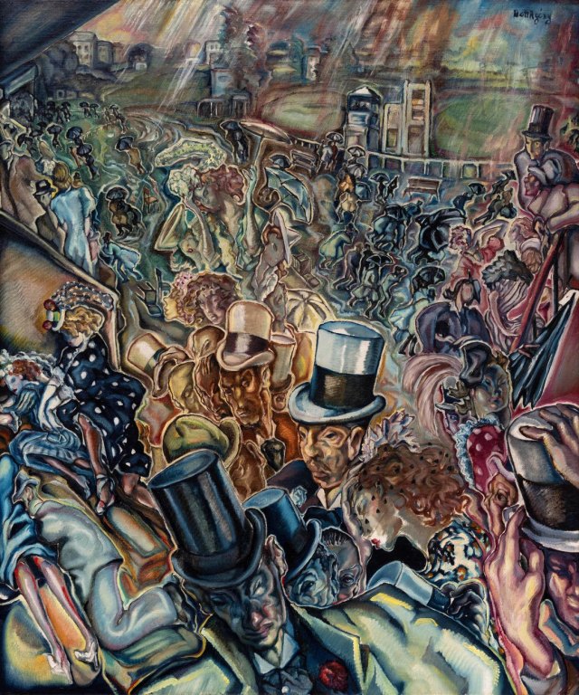 A Vihar a lóversenyen című festmény közel 100 évig lappangott, és egyike Batthyány legmodernebb, a kortárs művészethez ezer szállal kötődő műveinek. Az art deco jegyeket magán viselő alkotás korábban egy amerikai olajmágnás tulajdonában volt, aki személyesen a művésztől kaphatta a képet.