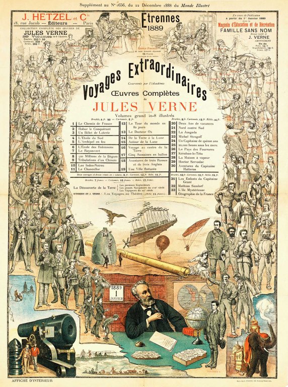 Hatalmas könyvtára és dokumentációja volt, számtalan cédulára jegyezte fel és tudományágak szerint rendezte sorba ismereteit. 1862-ben megismerkedett Jules Hetzel kiadóval, akivel szerződést kötöttek: eszerint az író évenként két regényt ír, melyeket a kiadó Rendkívüli utazások sorozatában jelentet meg. A mindkét fél számára gyümölcsöző kapcsolat első „terméke” az 1863-ban megjelent Öt hét léghajón című regény volt, mely példátlan sikert aratott, egy éven belül 11 nyelvre is lefordították. Ezt követte a Hatteras kapitány és az Utazás a Holdba.