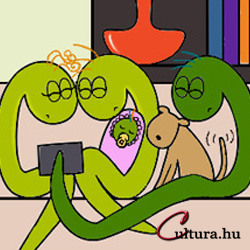 Byron repült, azaz sietett, mután megkapta a táviratott: Oeroemmel tudatjuk, hogy kikelt a tojaasbool Beckett ees Shelley kislaanya, Simone STOP Egeeszseeges ees nagyon cuki STOP Minden hozzaatartozoo rettentoen bueszke, nagy az oeroem Kiigyooeeknaal STOP Mucsi Boglárka Kígyó a városban című sorozatában mindig történik valami…