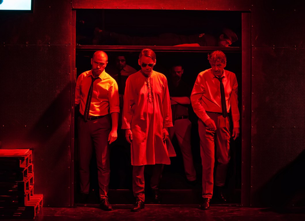 A rendezés az erőszakkal csínyján bánik, mást persze nemigen tehet. Ha kell, fortissimóra csavarja a színész hangerejét, például a hírhedt fülletépős jelenetben, de vért alig látunk: az agresszió jelenléte mégis hatással bíró – számomra ez a szinte láthatatlan és a színpad természete által követelt motívum szintén jellemezte az országot, a közhangulatot, akár szándékos volt, akár nem. Ami pedig a darálós beszédet, a humort és a feszültséget illeti, szinte minden a színészeken múlott, és a rendező olyan csapatot toborzott össze, melynek láttán előre megnyaltuk mind a tíz ujjunkat. Amennyire kudarcos a darab szereplőinek együttműködése, annyira sikeres a Vádli Társulás, a Nézőművészeti Kft., és a tatabányai Jászai Mari Színház szinergiája. A tíz színész, plusz a jeleneteket összekötő videóbejátszásokon bájolgó Pálmai Anna (a Dead Line Airlines stewardesse, a halál groteszk angyala) sziporkázik, de hadd ne emeljem ki most egyiküket sem, mert ez az előadás tényleg csapatjáték, és minden egyes tagja mintaszerűen illeszkedett a puzzle-ba.