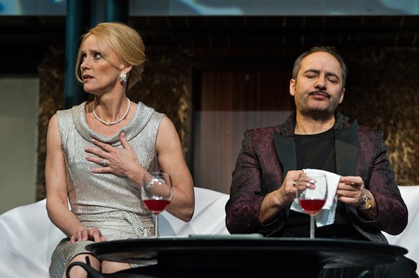 Egy vezető politikus otthonába, a tizedik házassági évfordulójára érkeznek sorra a procc vendégek – csak éppen pont a házigazdák hiányoznak. A váratlan helyzettől kétségbe eső házaspárok egyre inkább abszurdan kezdenek viselkedni, a képmutatók arcáról lefoszlik az álarc – miközben a közönség dől a röhögéstől. Ennek az előadásnak a szereposztása is parádés. Igazi nagyvárosi szennyes: kicsinyes pletykák, titkolt szerelmi kapcsolatok, házastársi sérelmek, féltékenység, írigység, jóhírnév-féltés, ambíciók – de az egésznek nincs súlya, tétje. Mégis nevettet.