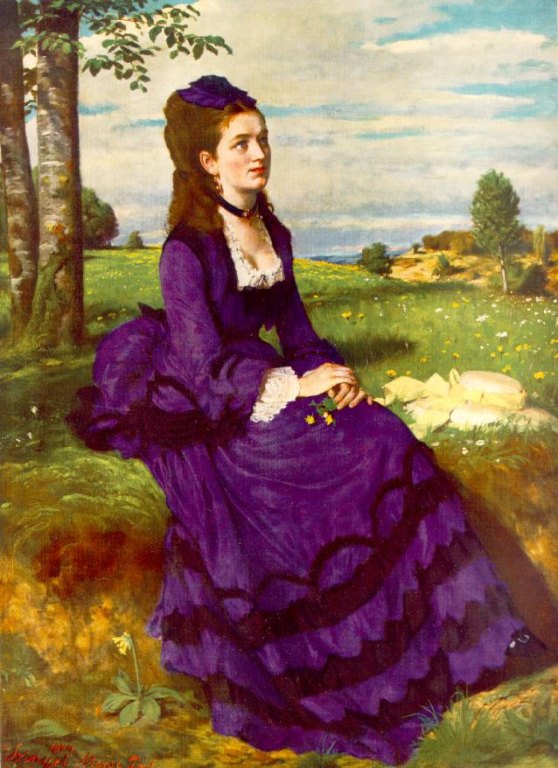 Néhány remekmű került ki ecsetje alól, például a feleségéről, Probstner Zsófiáról festett Lilaruhás nő (1874). 1876–77-ben a kastélypark végébe maga tervezte házat és műteremházat építtet. Az egészalakos képmás a festő fiatal feleségét ábrázolja. A mű minden jelentősége ellenére is visszalépést jelent a Majálishoz képest. A tájképi háttérrel ábrázolt alak nincs igazi egységben a tájjal. A kép műteremben készült.