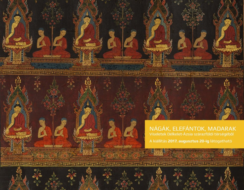A Nágák, elefántok, madarak – Viseletek Délkelet-Ázsia szárazföldi térségéből című kiállítás anyaga Délkelet-Ázsia meghatározó művészi kifejezésformáját, a textilművességet követi nyomon.