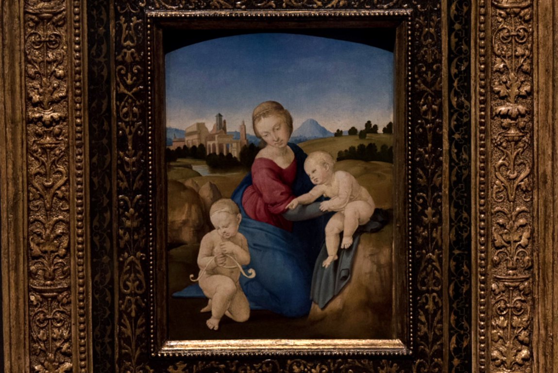 Raffaello 1504-ben Firenzében telepedett le, ahová Leonardo és Michelangelo híre vonzotta. Ekkoriban festett művei között szerepel azEsterházy-Madonna is, amit a pesti Szépművészeti Múzeum őriz, az Ifjú arcképe mellett. Leonardo hatását tükrözi, de új típusai, szelíd, kerek arcai mély érzelmeket és magasztos tökélyt sugároznak. Stílusa közérthetőbb, meghittebb, nyugodtabb nagy elődeinél, nem gyötörték kínzó kérdések, élete és művészete gondtalan volt.