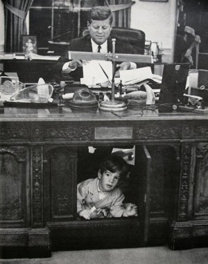 Egy alkalommal éppen egy dél-vietnami államcsínnyel kapcsolatos amerikai felelősségről mondta diktafonba a gondolatait, amikor vékonyka gyerekhang hangzott fel: Helló! Az elnök még nem egészen hároméves kisfia óvakodott be az ovális irodába. A gondterhelt államférfi egy pillanat alatt átalakult: