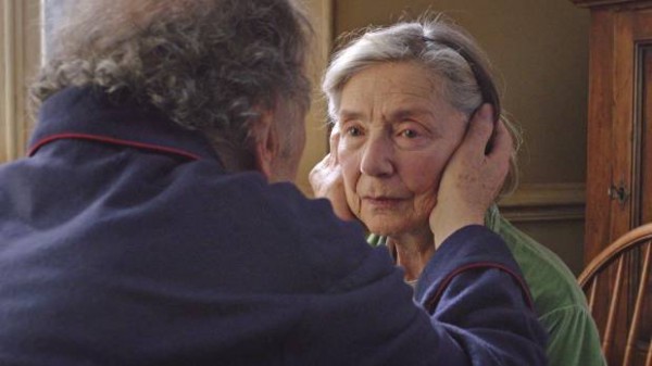 A filmnek van egy pontja, amikor minden néző felsóhajt, mert rájön, Haneke mire vállalkozik. Megpróbálja lefilmezni a halált. Most már bátran állíthatjuk, bele sem kezdtünk volna filmkritikánk írásába, ha nem sikerül neki. Kínosan félrenéznénk, de sikerült. Haneke szerint a halál kétféle. Mert ebben a földi életben minden kétféle, dualista, a halál miért ne lenne az. Lefilmezte egyrészt förtelmesnek, másrészt csodálatosnak. A nőért a kaszás jön el a férje képében, a férfiért a felesége galambként. A férfi a nő testét, a nő a férfi lelkét győzi le. Furcsa haláltáncban egyesülnek. Ahogy a tolószékből kiemeli a férfi a nőt, erősen átöleli, hogy meg ne csússzanak, s megáll az idő, mert ez egy tangó-ölelés. Jean-Louis Trintignant és Emmanuelle Riva kettőse túl van azon a határon, melyet színészkedésnek nevezünk. Súlyos határátlépés történik ugyanis kettőjük játéka közben. Ilyet csak nagyon kevésszer tud meglesni a filmes kamerája, ilyet megrendezni is csak valószínűleg úgy lehet, hogy közben a rendező is meghal egy kicsit. Meghasad a valóság szövete, a mozi vásznán két szomorú bohócarcon megjelenik az élet igazsága. A két öreg tekintete a néhány hónapos gyermek tekintetéhez hasonlatos. Négy hónapos Szonja lányom néz sokszor ilyen mélyen, feleségemet kérdeztem egy alkalommal, szerinted, mire gondol ilyenkor. Érzéseket gyűjt, válaszolta. Néz és megjegyzi közben az érzéseit. A filmtörténet egyetlen értelme a premier plan, az emberi arc, legalábbis Bergman szerint. Haneke lefotózta az idős emberi arc igazságát, aki újra érzéseket gyűjt a nagy út előtt. Ahogy a gyerekkorban is, az élet hosszú kalandja előtt.