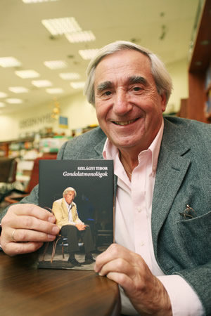 Szilágyi Tibor Gondolatmonológok című új könyvének dedikálással egybekötött bemutatóján a sok érdeklődő mellett természetesen legkedvesebb barátai is köszöntötték a szerzőt: Szilágyi János, televíziós, Berkes Zsuzsa, bemondó-műsorvezető, Ráday Mihály, művészettörténész, valamint Keleti Éva fotóművész, aki ezúttal riporterként kérdezte régi barátját a könyvről.