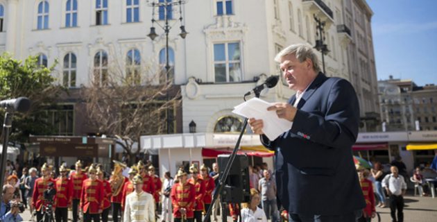Beszédét József Attila Thomas Mann üdvözlése című versének soraival zárta: az, hogy „fő-e uj méreg, mely közénk hatol – meddig lesz hely, hol fölolvashatol?”, manapság szerinte ez a könyvhét kérdése is.